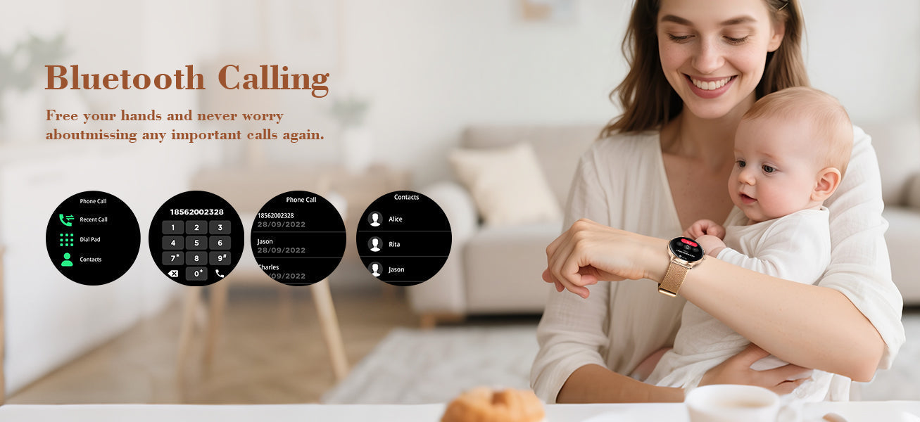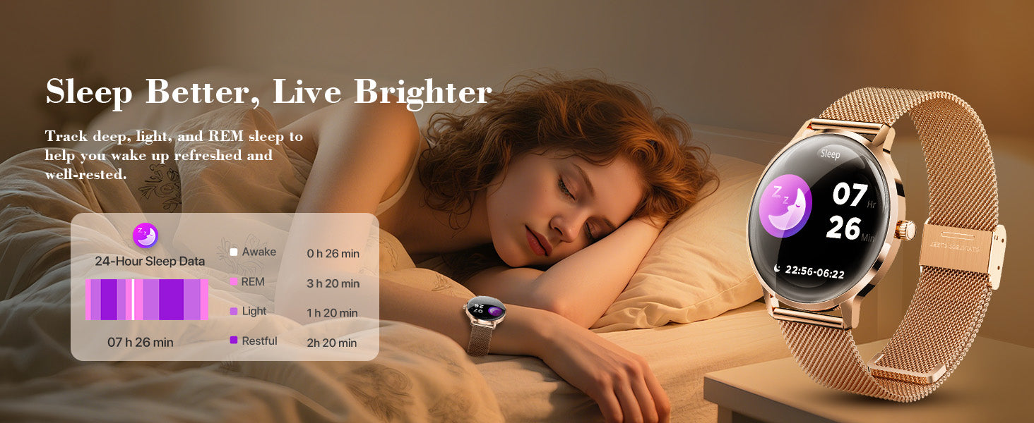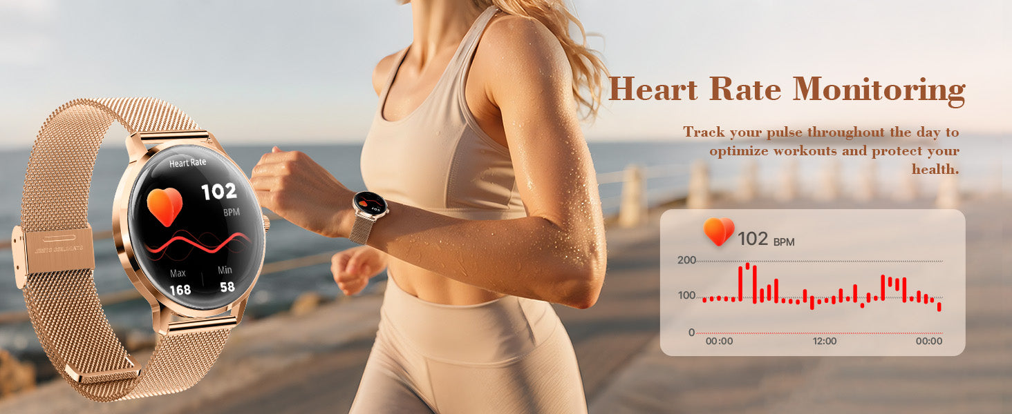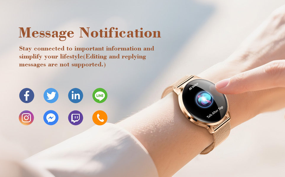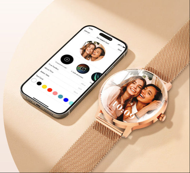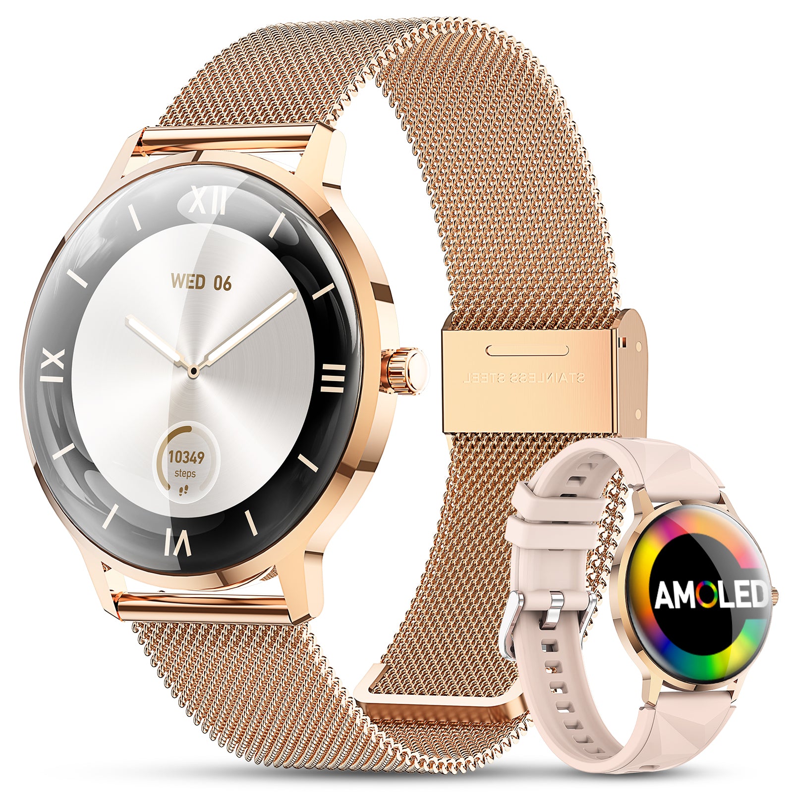 Comes with two interchangeable straps (Milanese and silicone) to suit any style. A great smartwatch gift for women — perfect for birthdays, Christmas, or any special occasion. Includes 1-year warranty and 24/7 customer service for peace of mind.