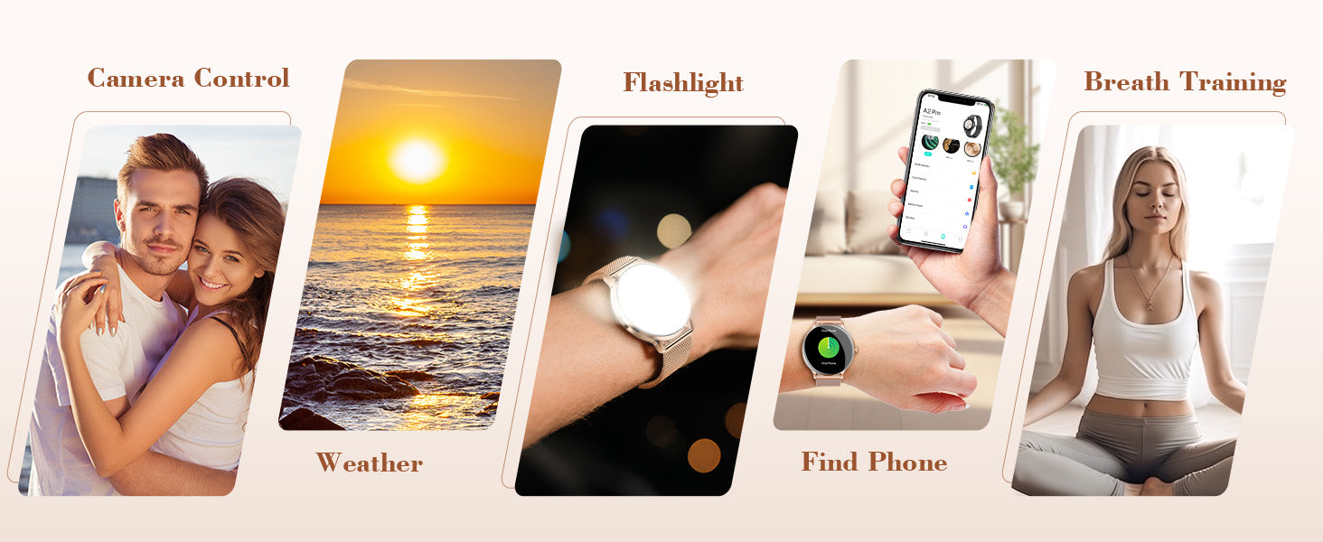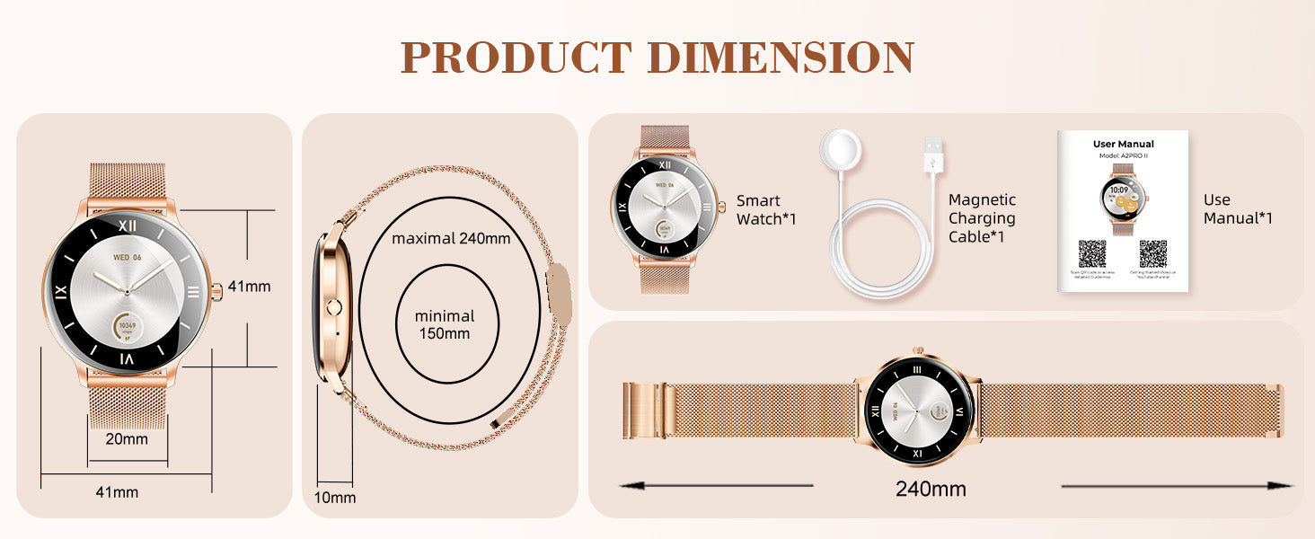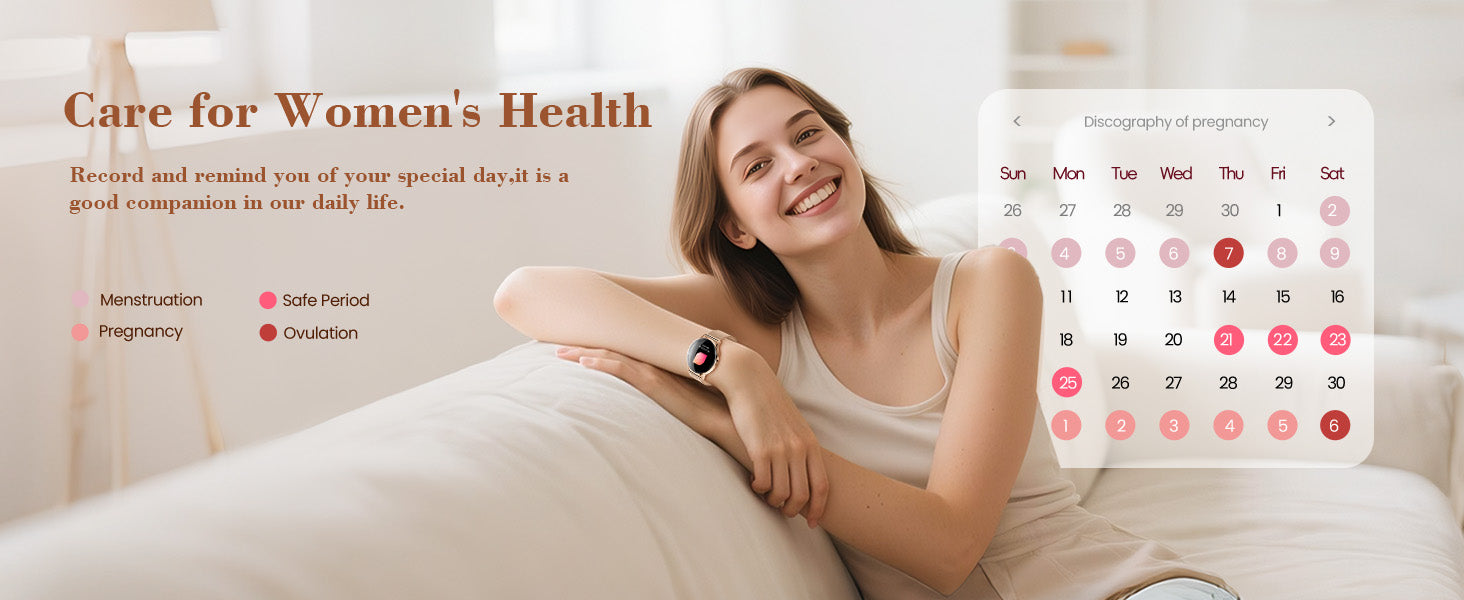 Designed with women's wellness in mind, the A2PRO women’s smartwatch tracks menstrual cycles, sleep, heart rate, stress, breathing, and blood oxygen levels. A true Android-compatible smartwatch for women that supports you day and night through every phase of life.