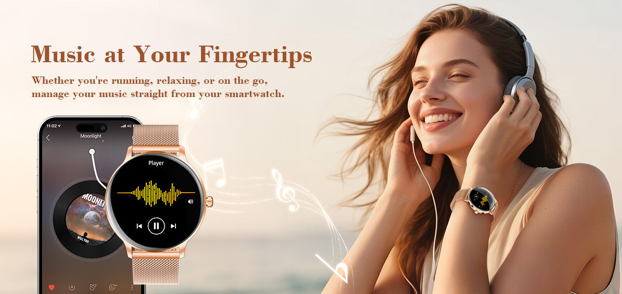 Designed for delicate wrists, this women’s smartwatch features a 1.32” curved screen with a refined finish. Lightweight and elegant, it’s the ideal everyday smartwatch for women — from work to casual outings.